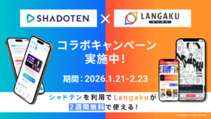 英語学習プラットフォームの株式会社プログリット(本社:東京都港区浜松町、代表取締役社長:岡田 祥吾、証券コード:9560)が提供する、リスニング力向上に特化したサブスクリプション型英語学習サービス『シャドテン』は、Mantra株式会社(本社:東京都文京区、代表取締役:石渡 祥之佑)が提供するマンガ英語多読アプリ『Langaku』とのコラボキャンペーンを2026年1月21日(水)〜2026年2月23日(月)に開催いたします。本キャンペーンでは、両サービスの利用者が相互に2週間無料で体験できる機会を提供し、リスニング力向上の効果最大化を支援してまいります。
